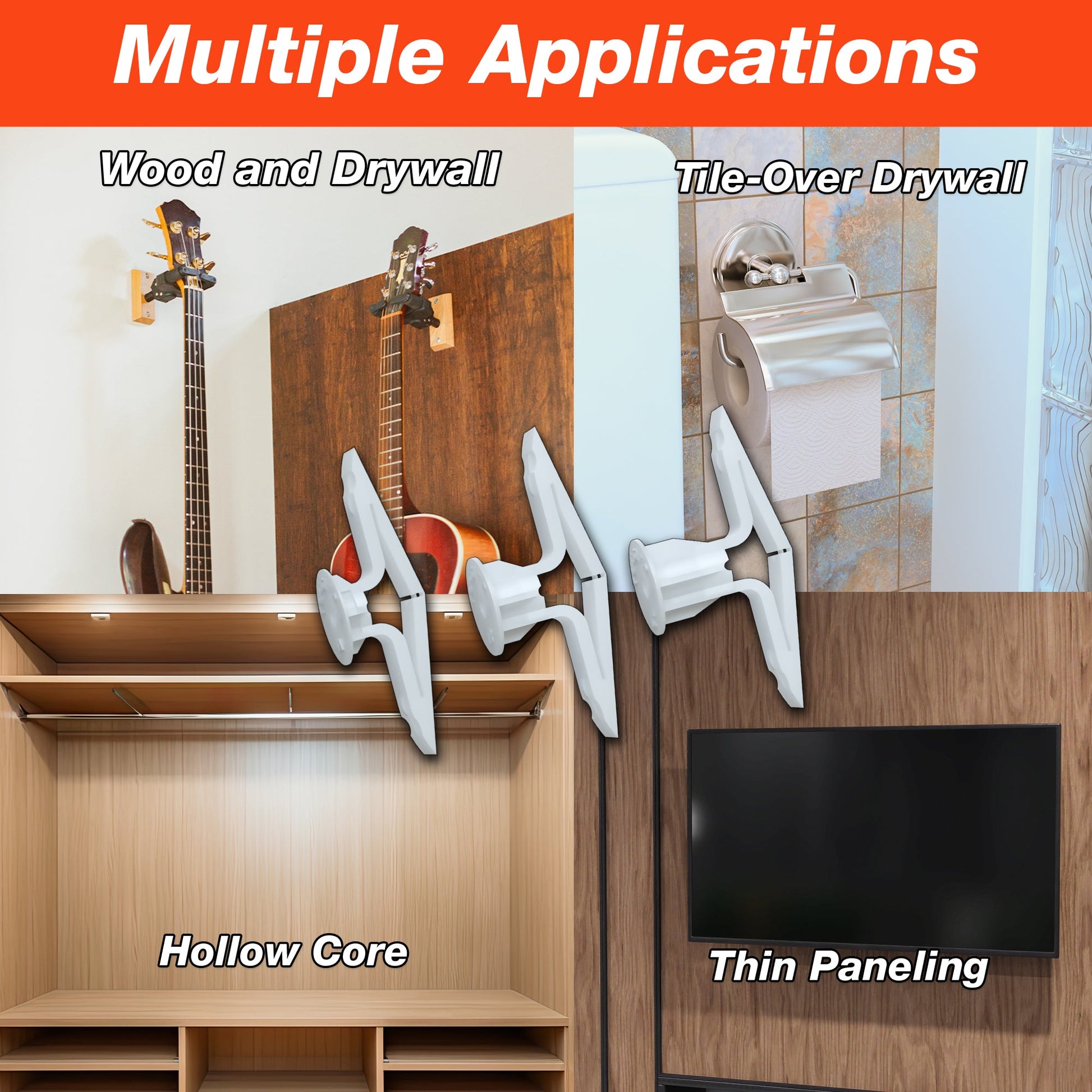 TOGGLER plastic toggle anchors provide vibration-proof anchoring of light to medium loads in hollow walls & ceilings, but also hold securely when they encounter an unexpected solid, such as a wooden stud, or when performing as wedge anchors in materials with thicknesses above their normal wall grip range. Improvements in the original design have increased holding strength and abuse resistance. Holding arms have been thickened and strengthened without increasing insertion hole size, and major stress points have been significantly reinforced without increasing anchor size. Use TOGGLER SNAPTOGGLE® toggle bolts for highest hollow wall holding strength.